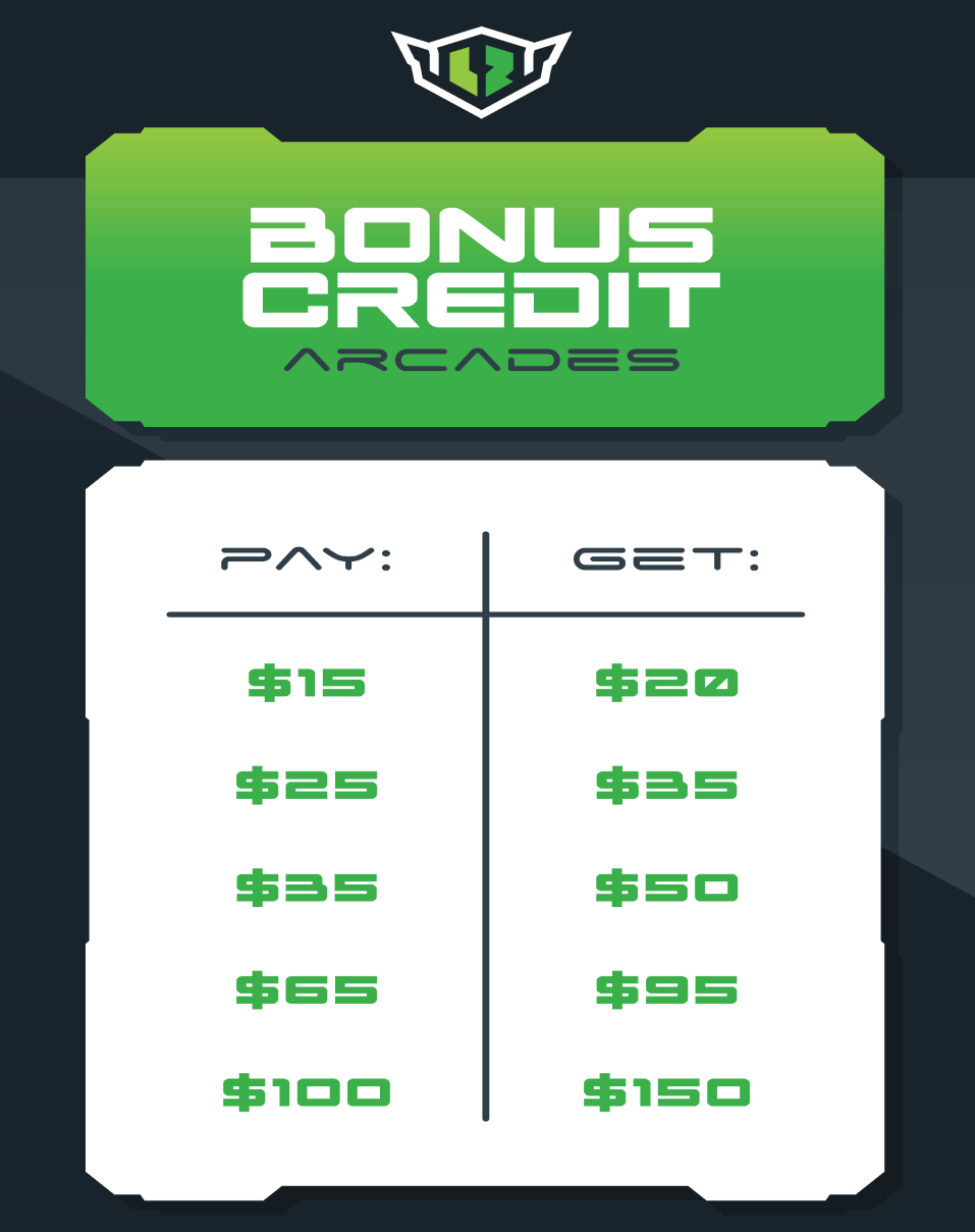 See Prices & Packages for Arcade pricing during our passes!